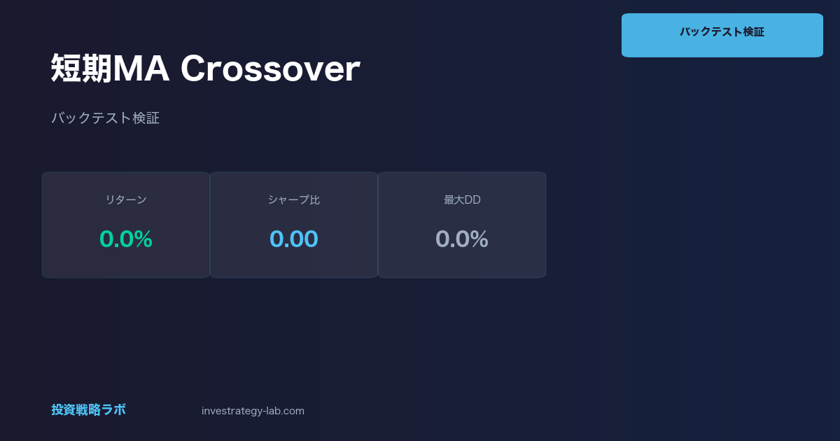 短期MA Crossover戦略は、2本の移動平均線の交差を売買シグナルにするテクニカル手法です。