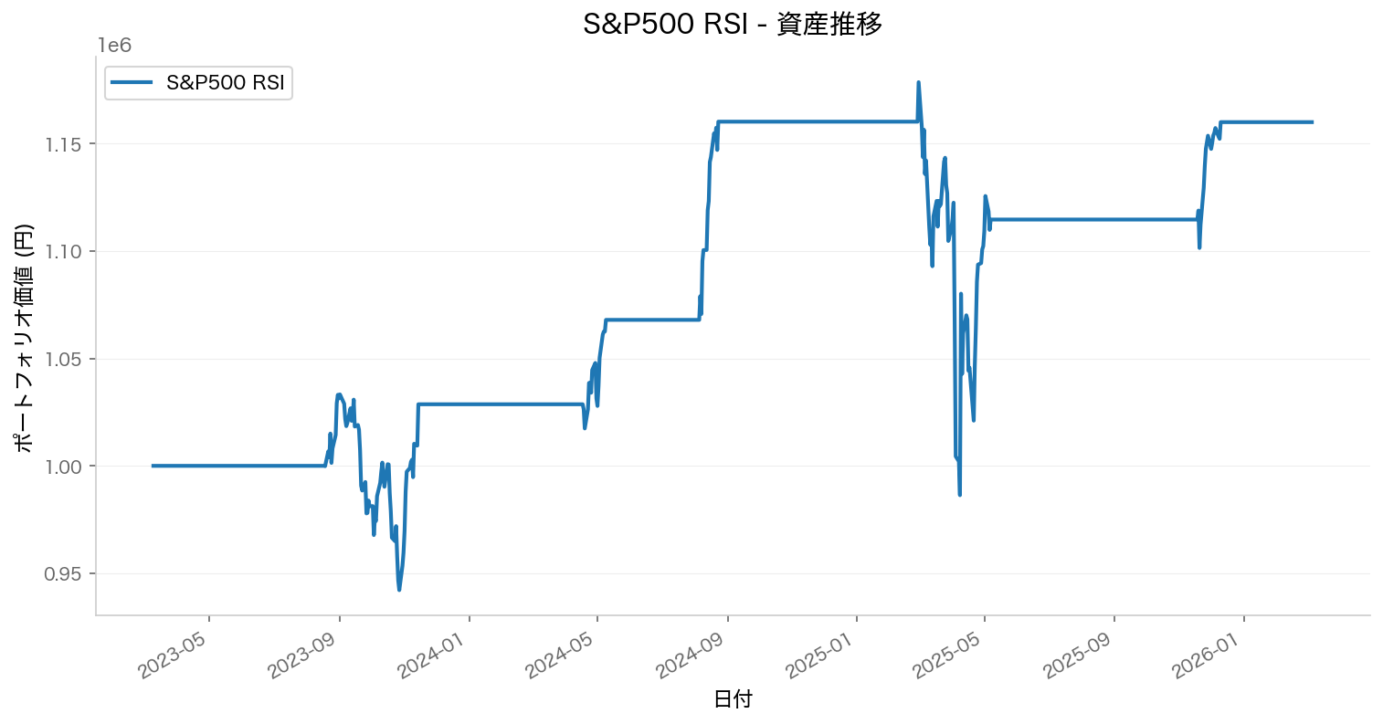 つまり、「S&P500にRSI戦略を単体で適用する」という組み合わせが、この検証期間では最適でなかったということです。相場環境や銘柄の特性によって、テクニカル分析の有効性は大きく変わるのです。